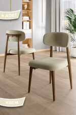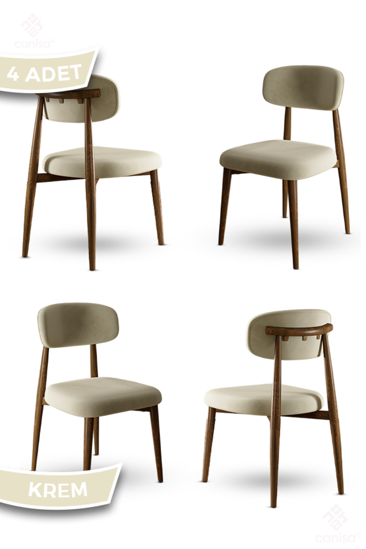 Canisa Laos Serisi 4 Adet Krem Mutfak Sandalyesi Ahşap Kaplama 1. Sınıf Babyface Kumaş