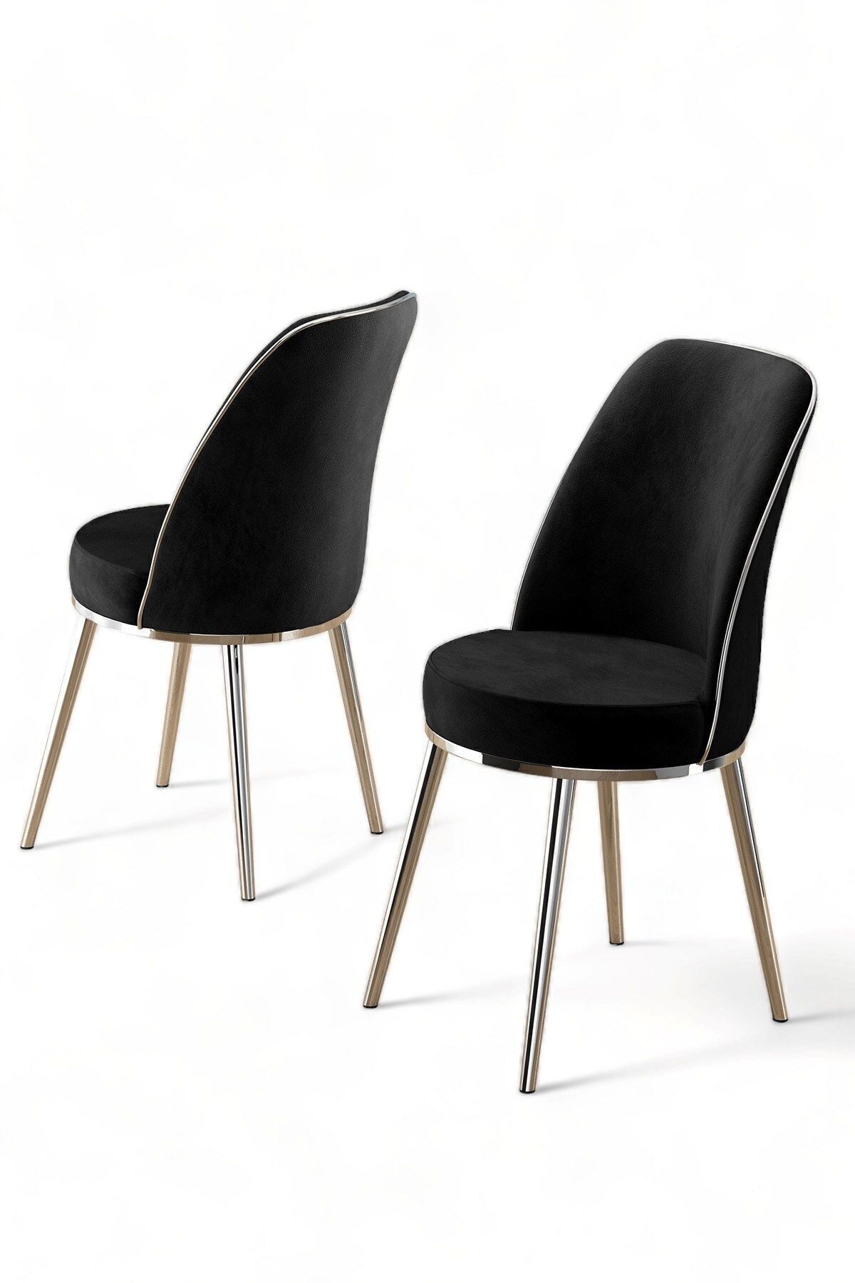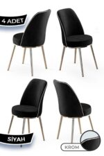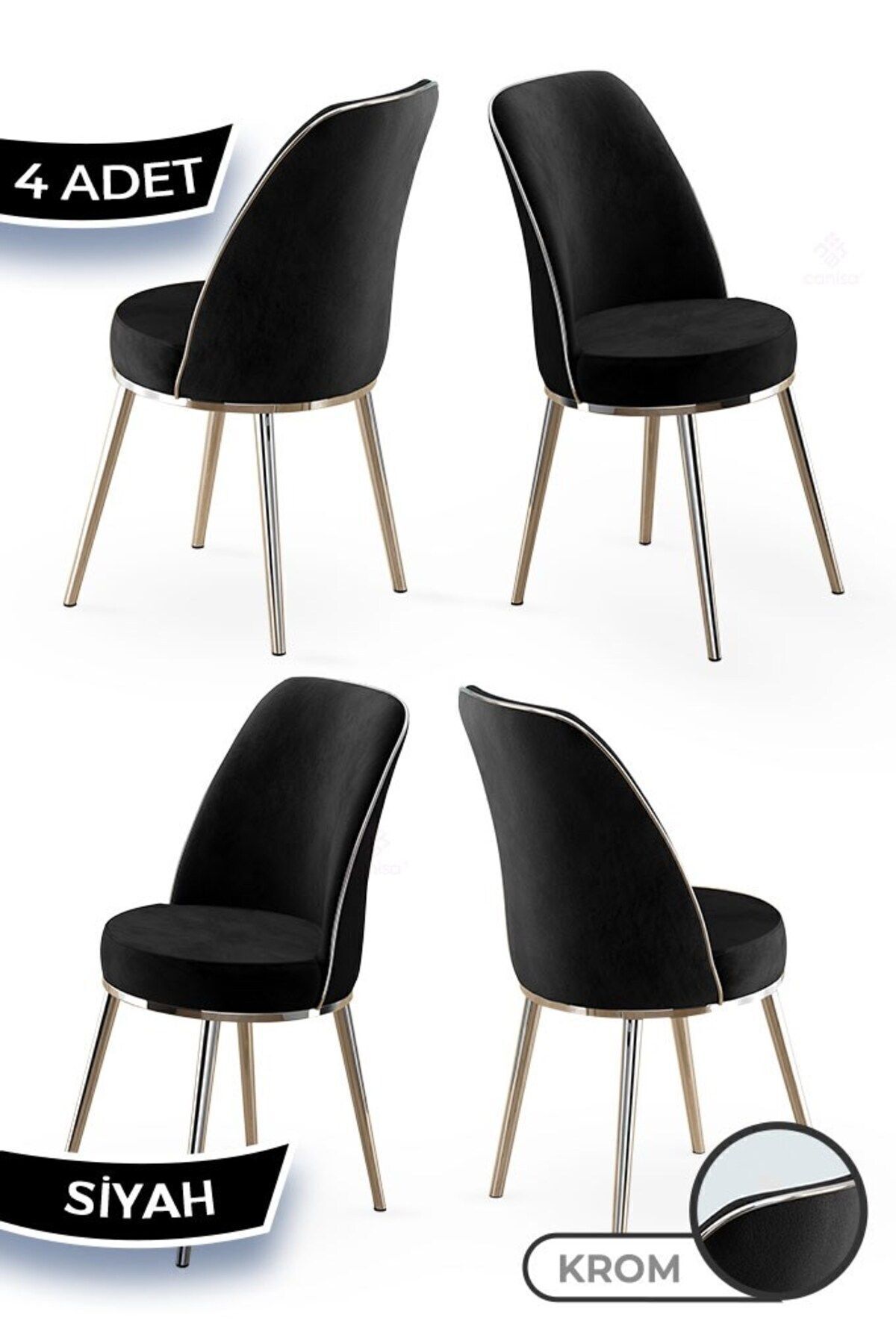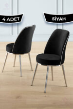 Canisa Pefa Serisi 4 Adet Siyah Mutfak Sandalyesi Krom Kaplama Metal Ayak 1. Sınıf Babyface Kumaş