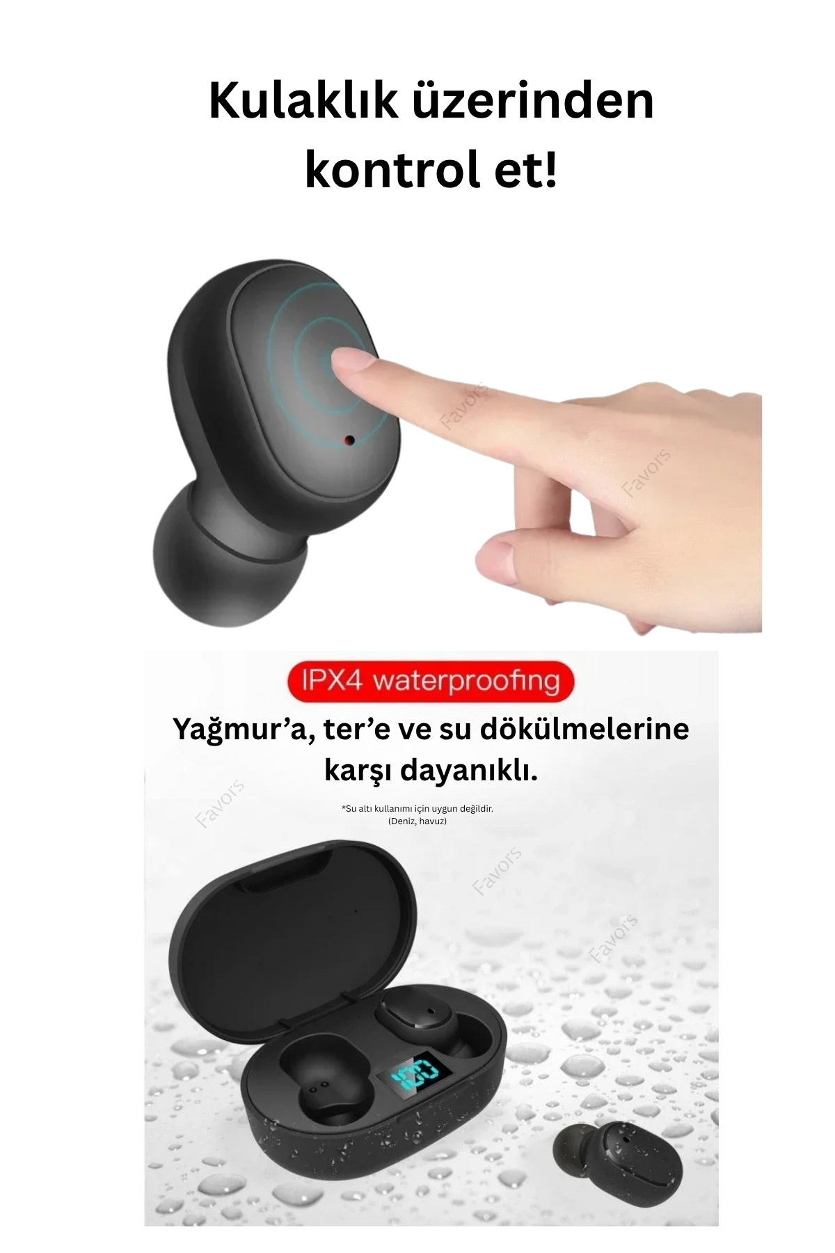 - Suya dayanıklı Bluetooth kulaklık IPX4 sertifikasına sahip model, su sıçramalarına karşı dayanıklılığı sayesinde yağmurlu havalarda da tercih edilebilir.