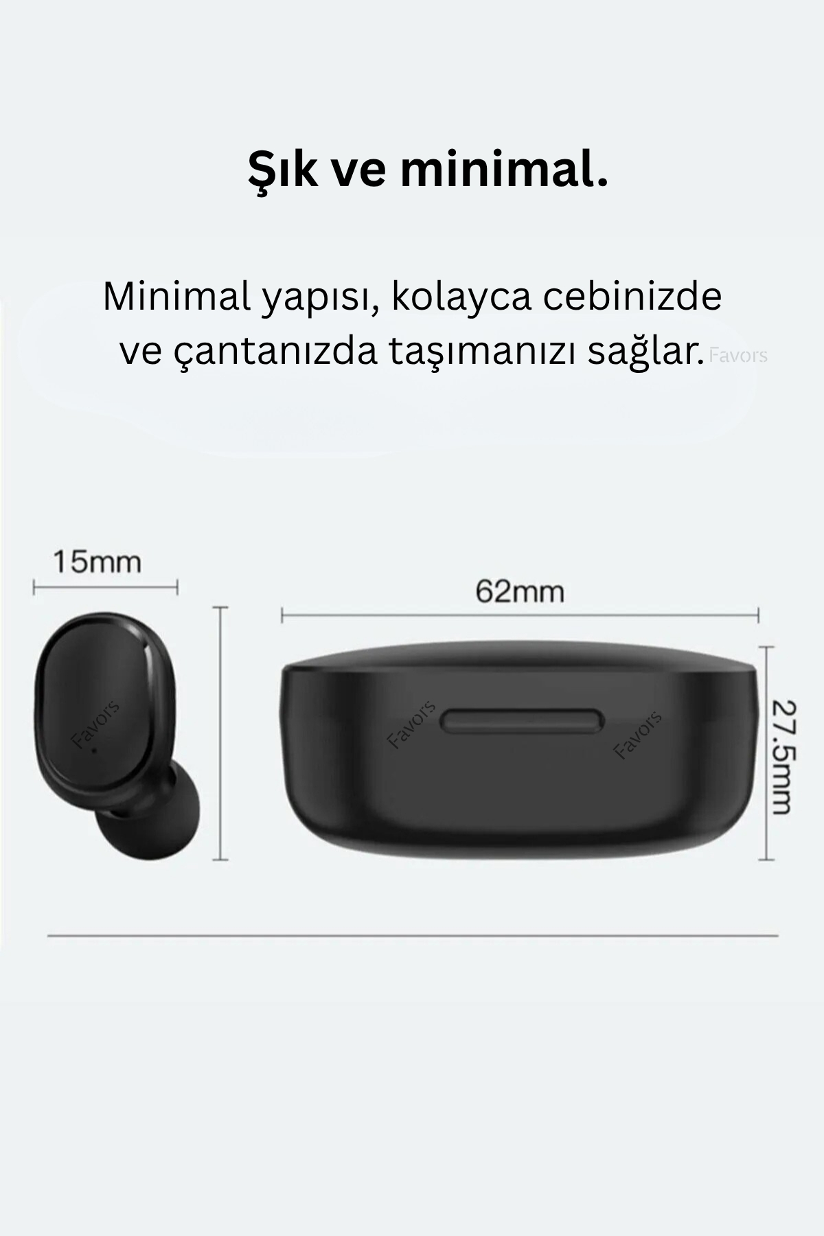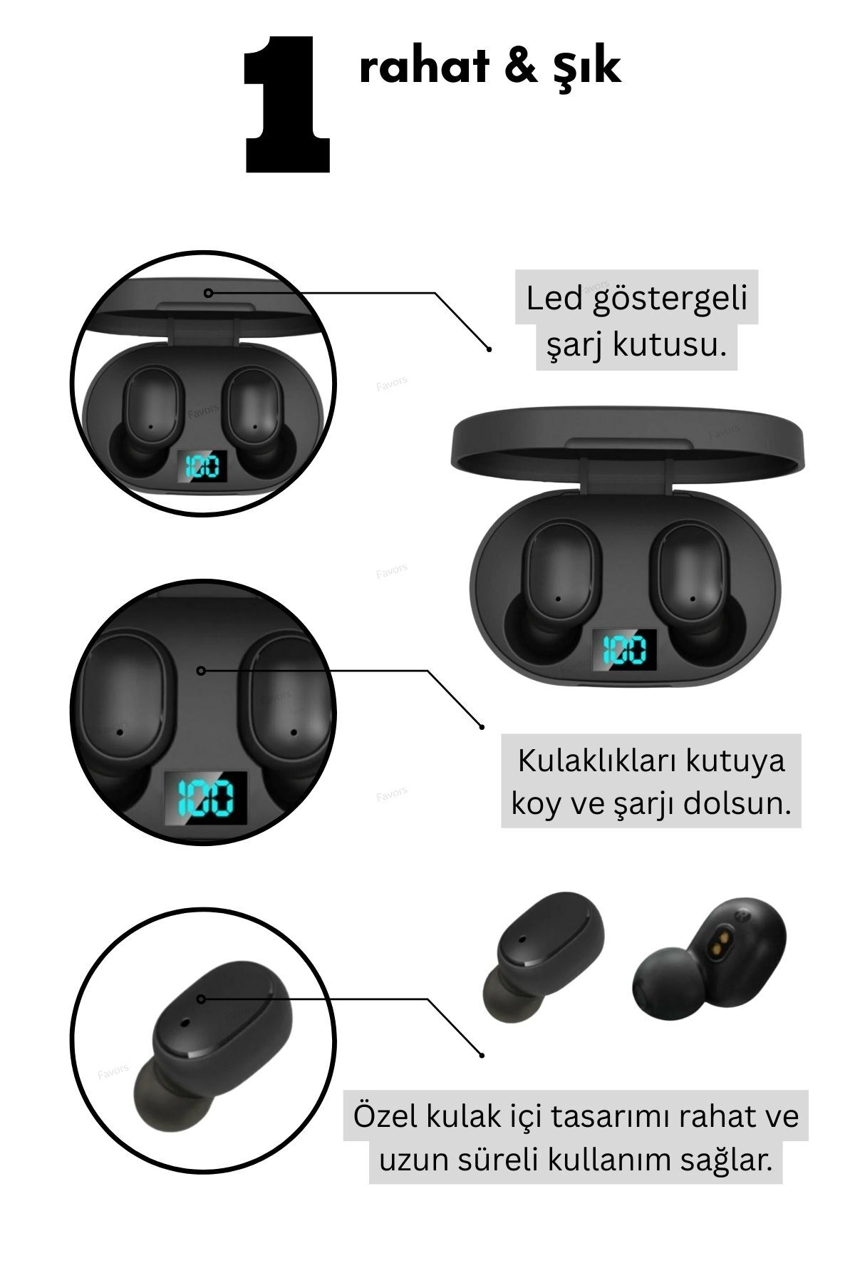 - Favors Dots E6S Bluetooth kulaklık hafif ve kulak içine tam oturan yapısı sayesinde düşmeden rahatlıkla kullanabileceğiniz şekilde tasarlanır.