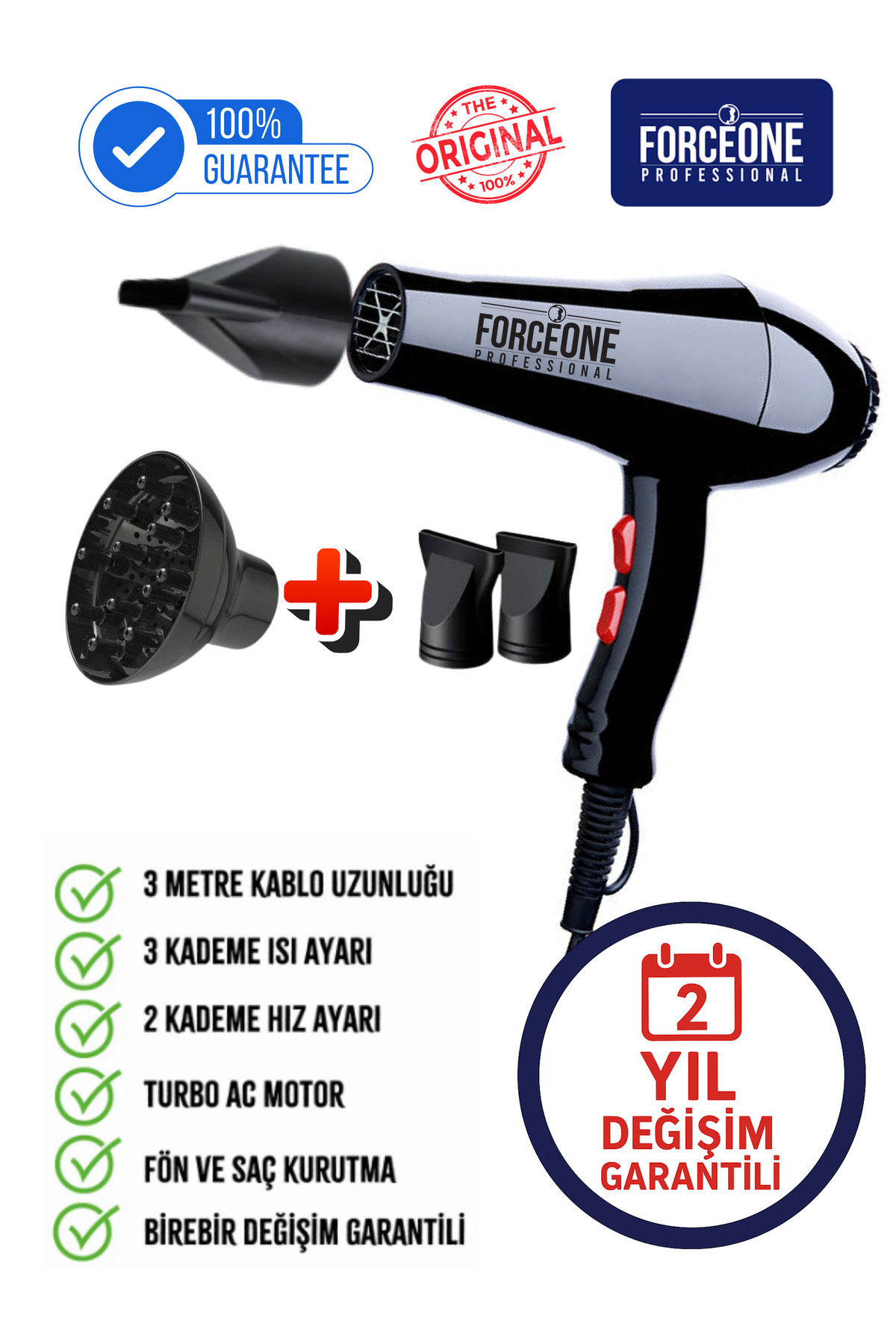 FORCEONE 5500 Turbo Vigo Başlıklı Fön Makinesi – 2400 Performans