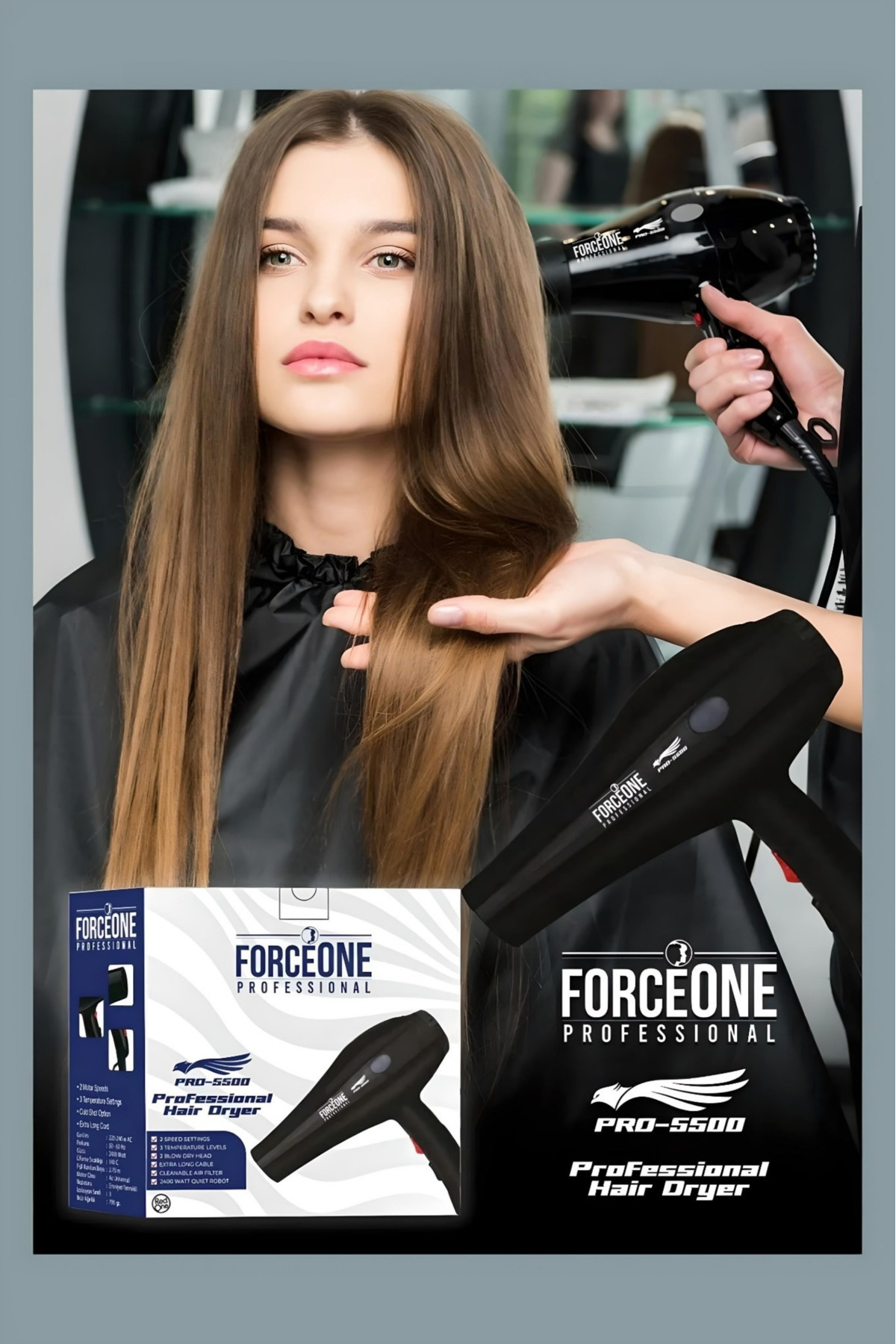 FORCEONE Kuaför Tipi Pro 5500 Turbo Profesyonel Saç Krutma Ve Fön Makinesi 2400 Performance
