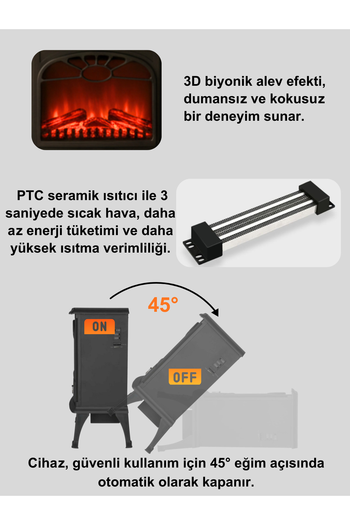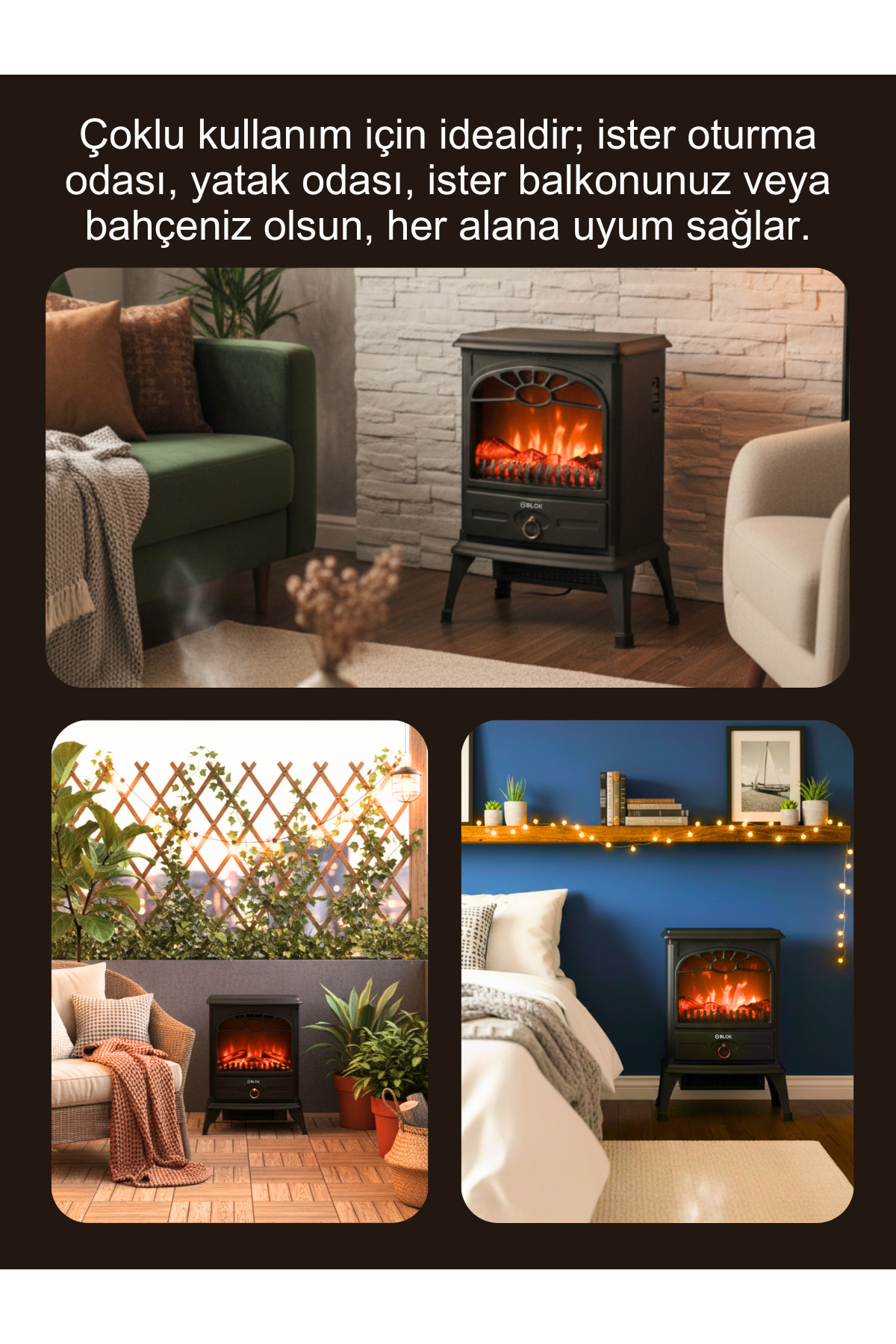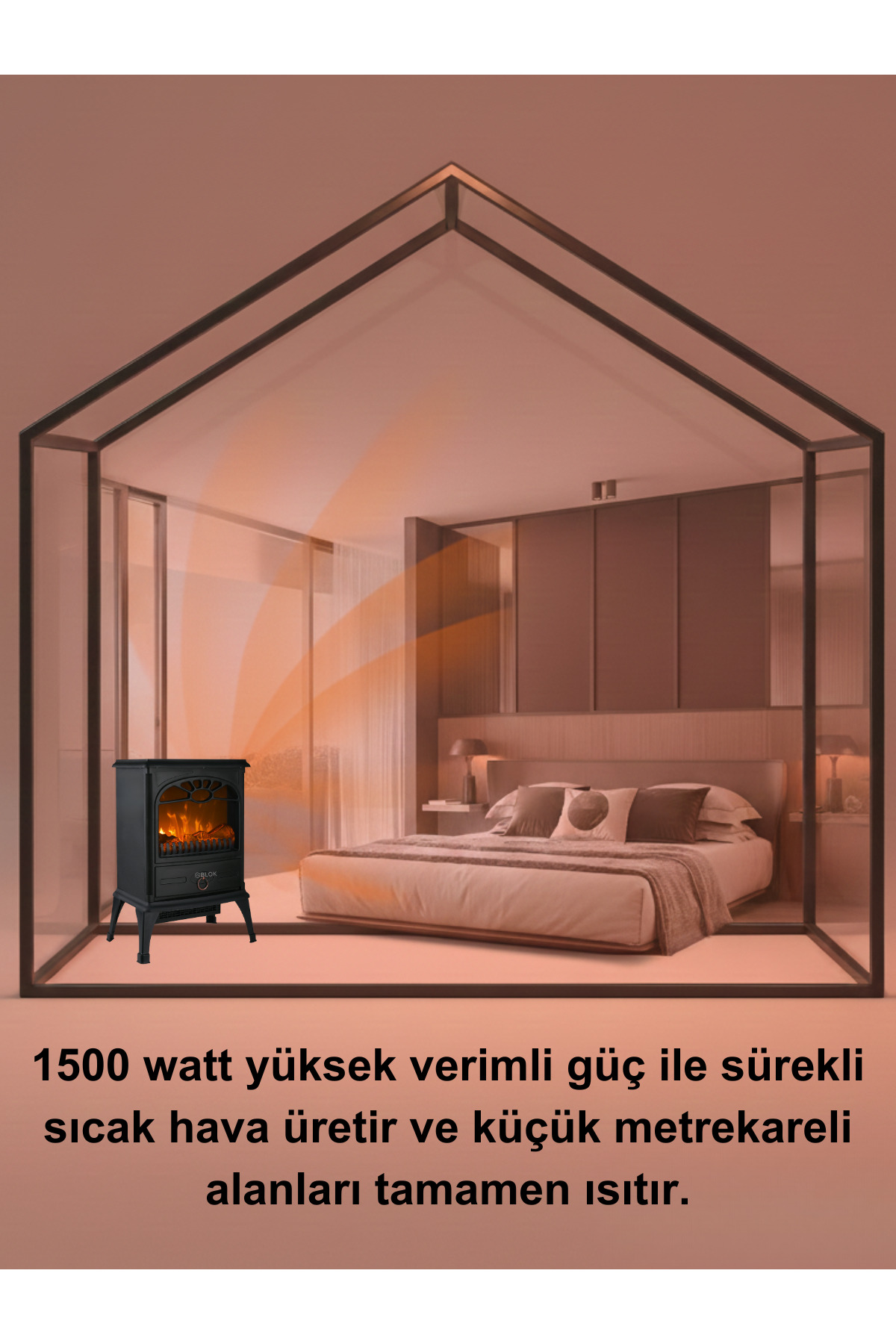 gblok Elektrikli Şömine ,soba 1500w Isıtıcı Fan, Alev Efektli TPL-A1-5