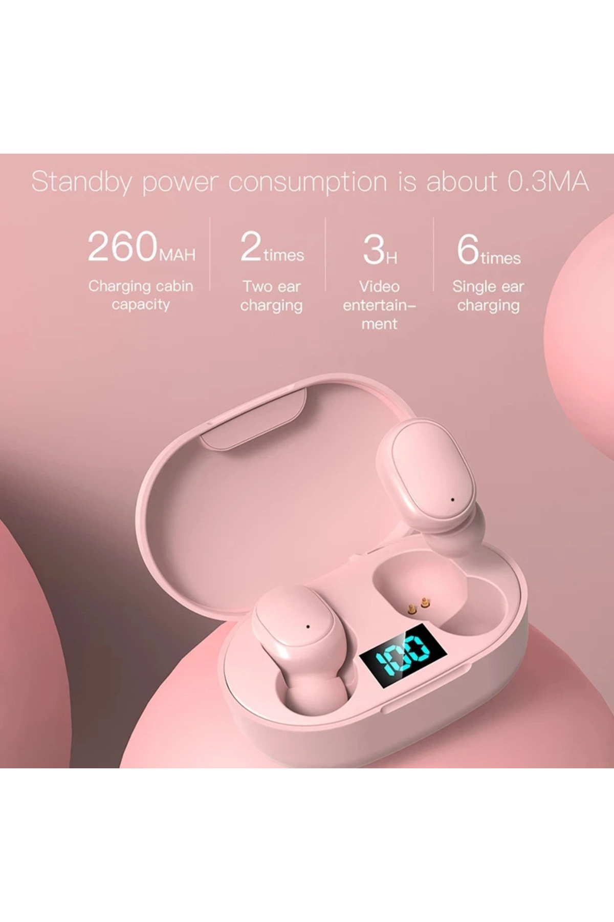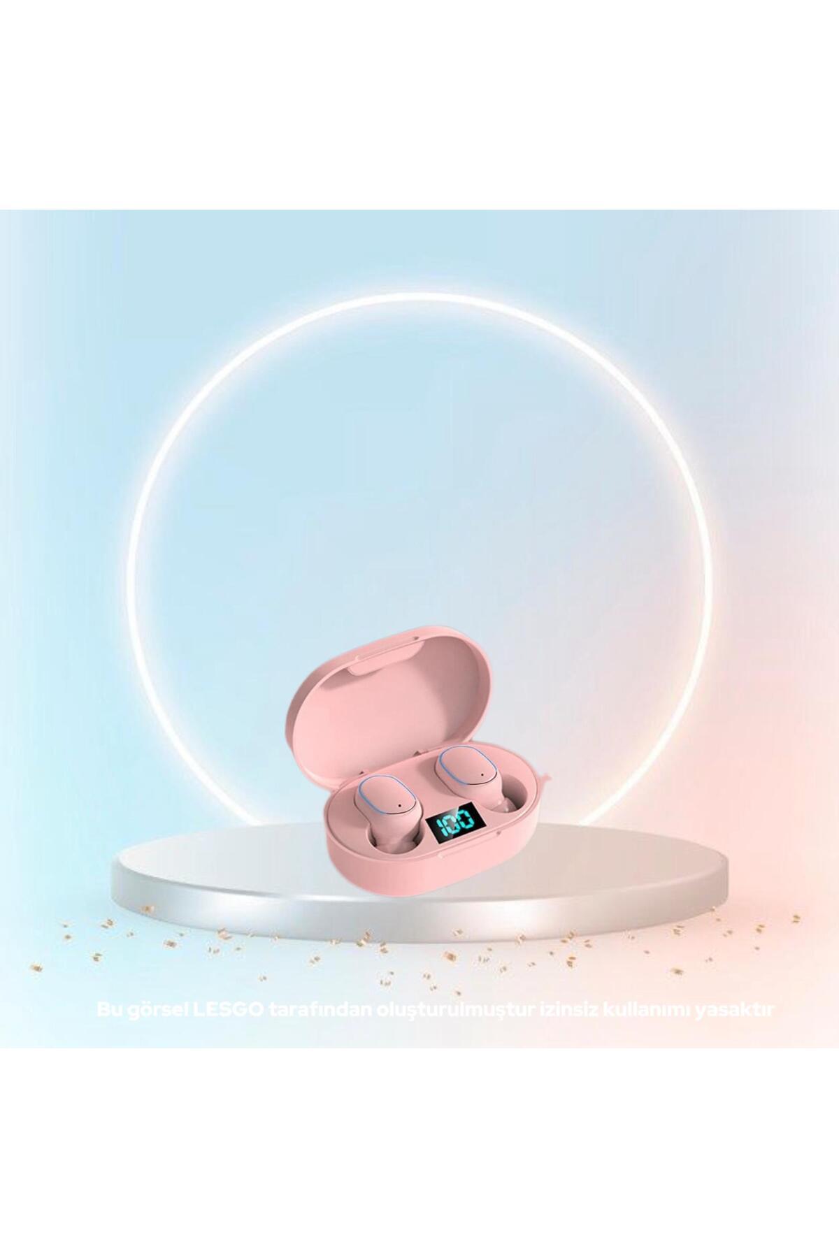 LESGO E6s Bluetooth 5.0 Kablosuz Kulaklık Toz Pembe Çift Mikrofonlu Powerbank Kutulu 2024versiyon
