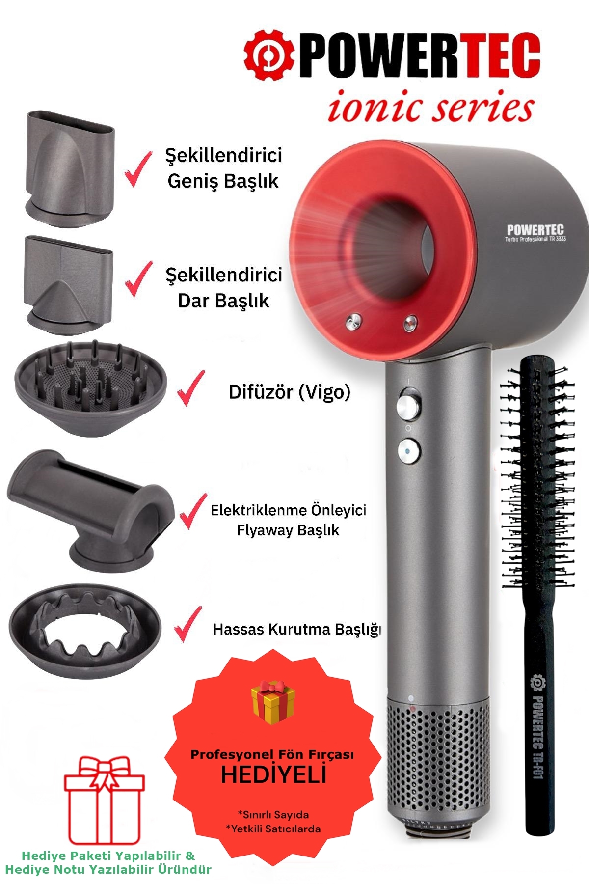Powertec TR-3333 İyonizerli 5 Fonksiyon Plazma Saç Kurutma & Fön Makinesi