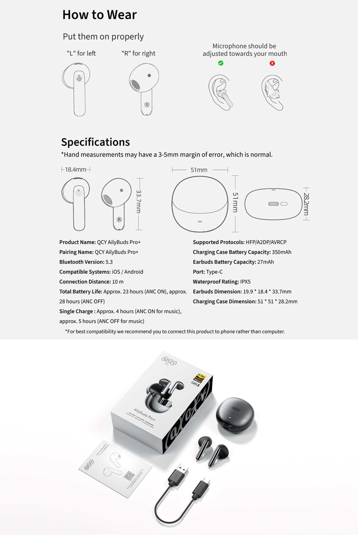 Qcy HT10 Ailybuds Pro Adaptif ANC AI 6 Mikrofon Bluetooth 5.3 Kablosuz Kulaklık