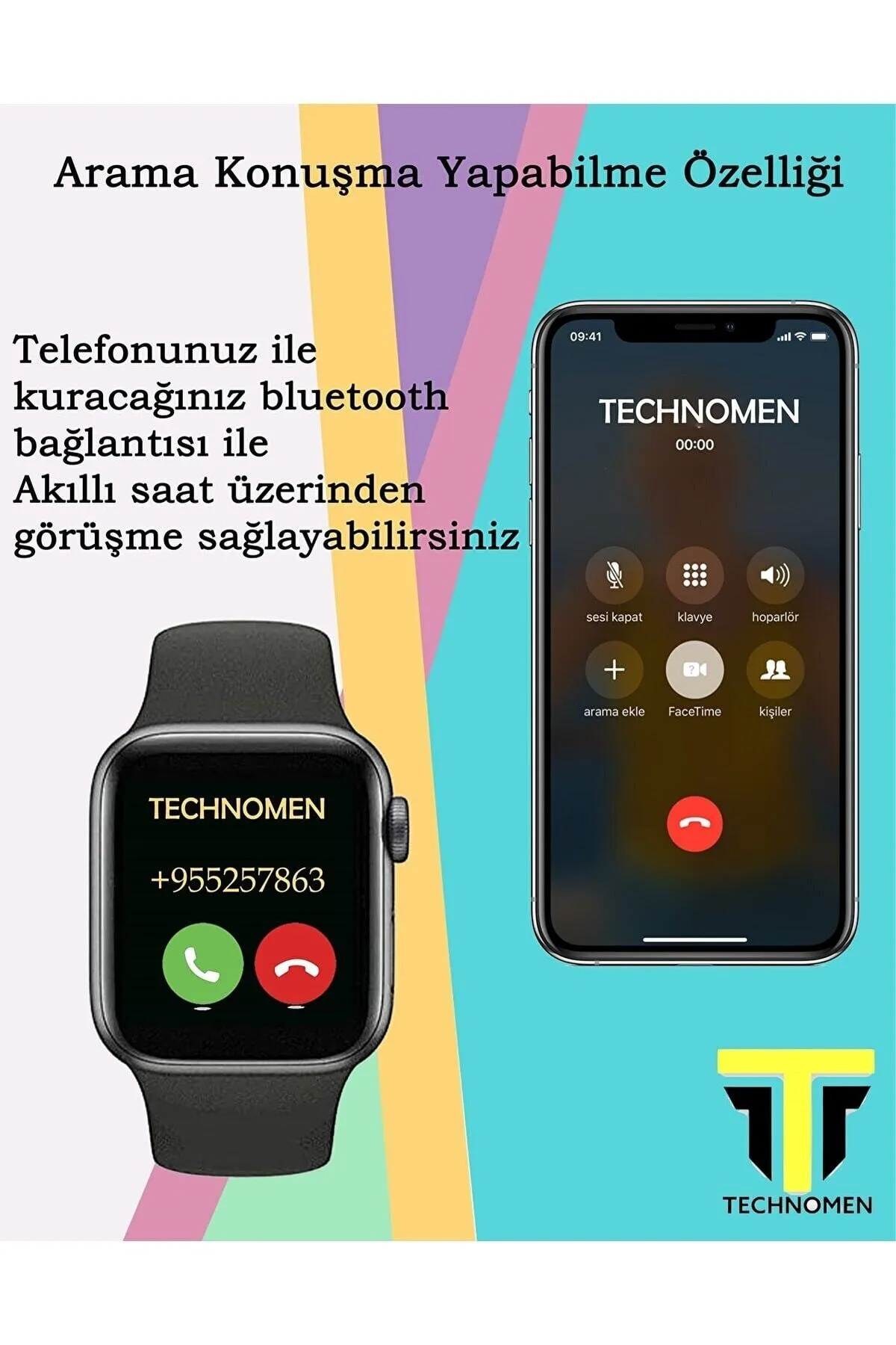 TECHNOMEN Arama Özellikli ve Tüm Telefonlarla Uyumlu Türkçe Yeni Versiyon Akıllı Saat ve Bluetooth Kulaklık