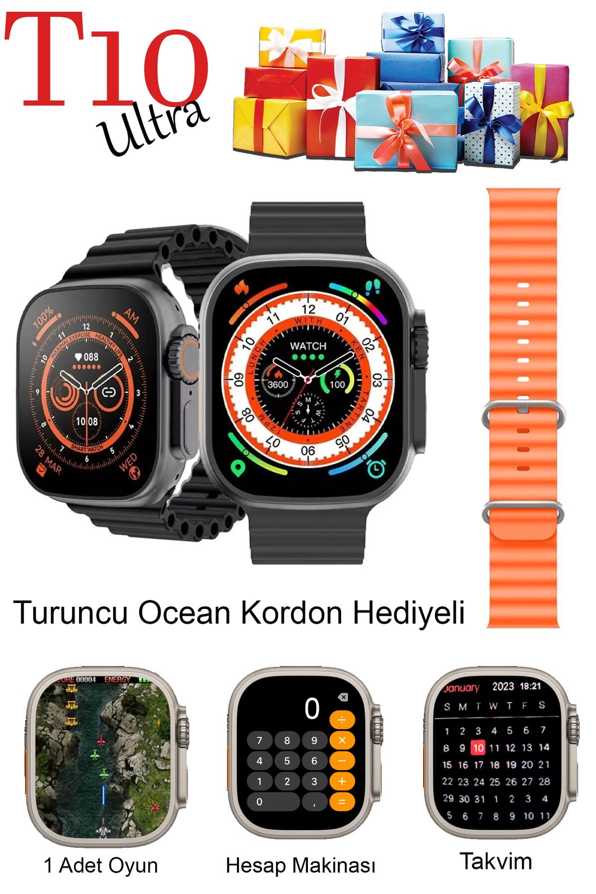 TECHNOMEN T10 Ultra Akıllı Saat Son Sürüm Kordon Kilitli Iosandroıd Uyumlu Kordon Hediyeli 2.09inç Büyük Ekran