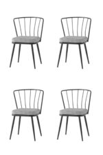 Zemes Design 4 Adet Güneş Sandalye Siyah Mutfak Salon Yemek Odası Sandalyesi Metal Ayak